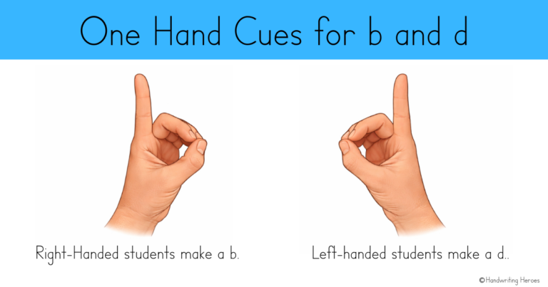 A commonly used strategy is the “bed” hand cue, where students hold up both hands to form the letters b and d. While this can be helpful initially, using both hands at once can increase cognitive load and slow decision-making during writing.